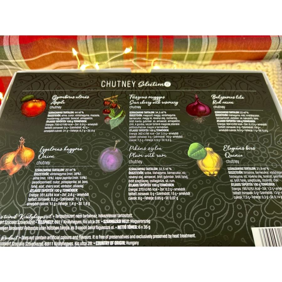 | Összetevők | Gyömbéres alma, izgalmas hagyma, fűszeres meggyes, elegáns birs, balzsamos lila és pikáns szilva. |